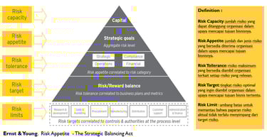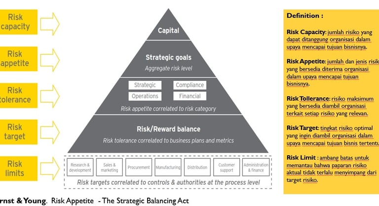 Risk Appetite didefinisikan sebagai jumlah dan jenis risiko yang bersedia diterima organisasi dalam upaya mencapai tujuan bisnisnya (stakeholder objectice).