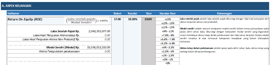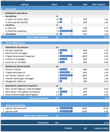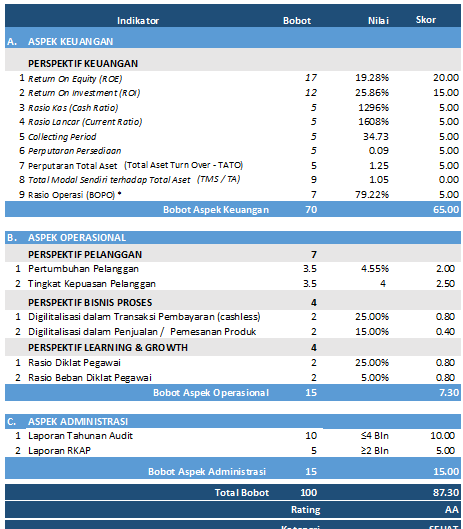 Masing-masing aspek dirinci ke dalam beberapa indikator penilaian melalui pendekatan balanced score card.